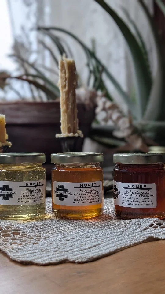 We offer two seasonal varieties of raw honey, each with its own distinct flavor profile depending on what our bees are foraging on throughout the year: